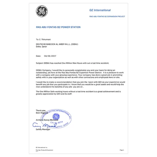1 Million Manhours Award
