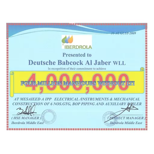 4 Million Manhours Award