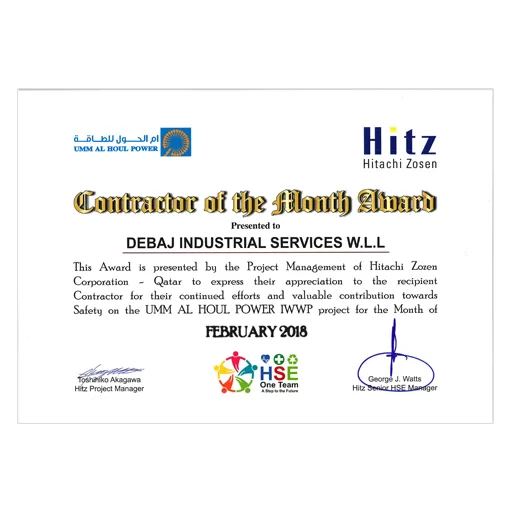Contractor of the month Safety award Hitachi UAH